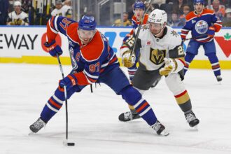 Evan Bouchard scored early in overtime to lift the Edmonton Oilers to a 4-3 win over the Vegas Golden Knights on Thursday night. The game featured playoff intensity and carried significant implications in the Pacific Division standings. Edmonton strengthened its…