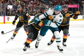 Hertl Nets Two, Lindbom Earns First NHL Win as Golden Knights Outlast Sharks 4–3