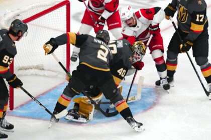 Mitch Marner finally found the back of the net in his new colors, scoring his first two goals as a member of the Vegas Golden Knights, while teammates Mark Stone and Jack Eichel each recorded four-point nights to fuel a…
